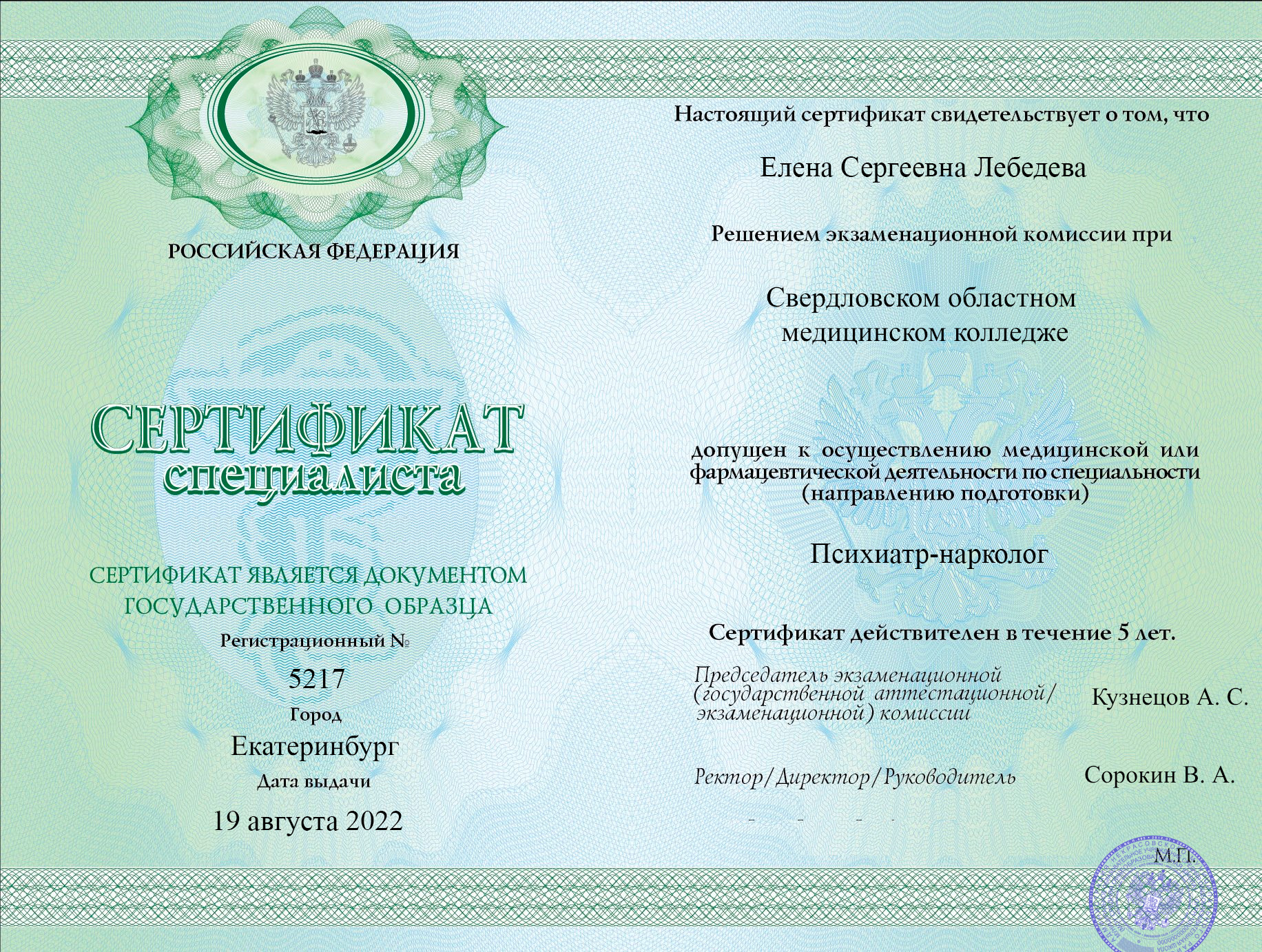 Елена Сергеевна Лебедева врач нарколог клиники доктора Стукаловой в Свирске